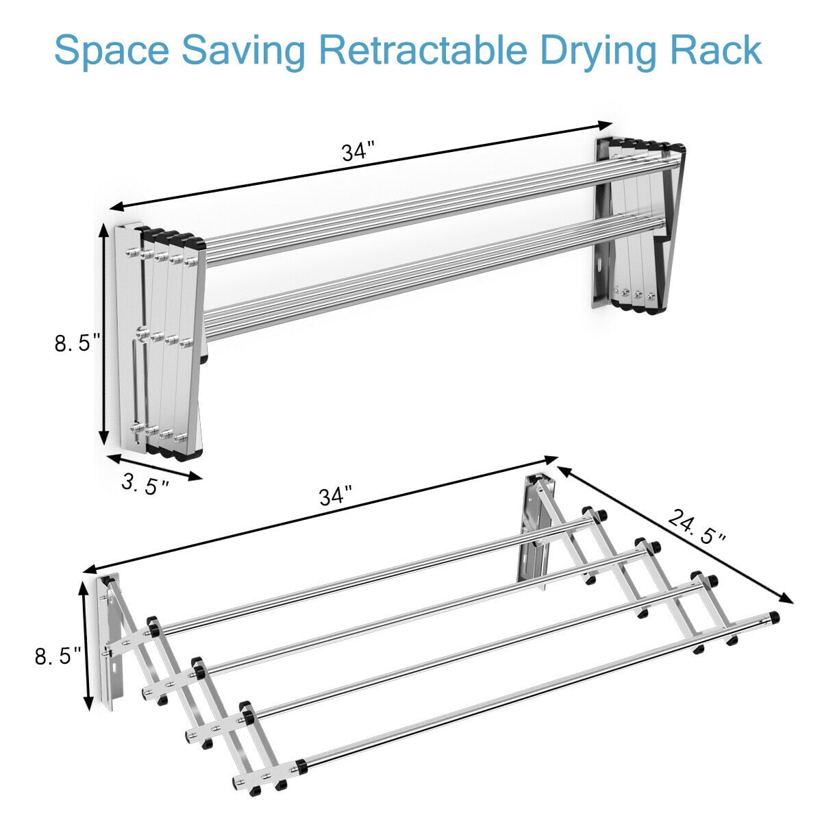 Skip to main content.ca hello, sign in. Indoor/outdoor laundry rack is great for drying towels and sheets. Tangkula wall mounted laundry drying rack, stainless steel 8 rods collapsible drying rack, home folding drying rack, expandable wall mount laundry clothes drying rack, 34x24.5x8.5, 60lb capacity. Type of laundry room item. This versatile laundry rack features 21.3 ft.